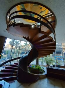 أما أكثر ما جذب انتباهي فكان السلم الحلزوني الشهير داخل المبنى، هذا العمل المعماري البديع الذي يلفت الأنظار بتصميمه الفريد وطريقة بنائه المميزة، حتى إن بعض طلاب الهندسة يقصدونه خصيصًا لدراسته.