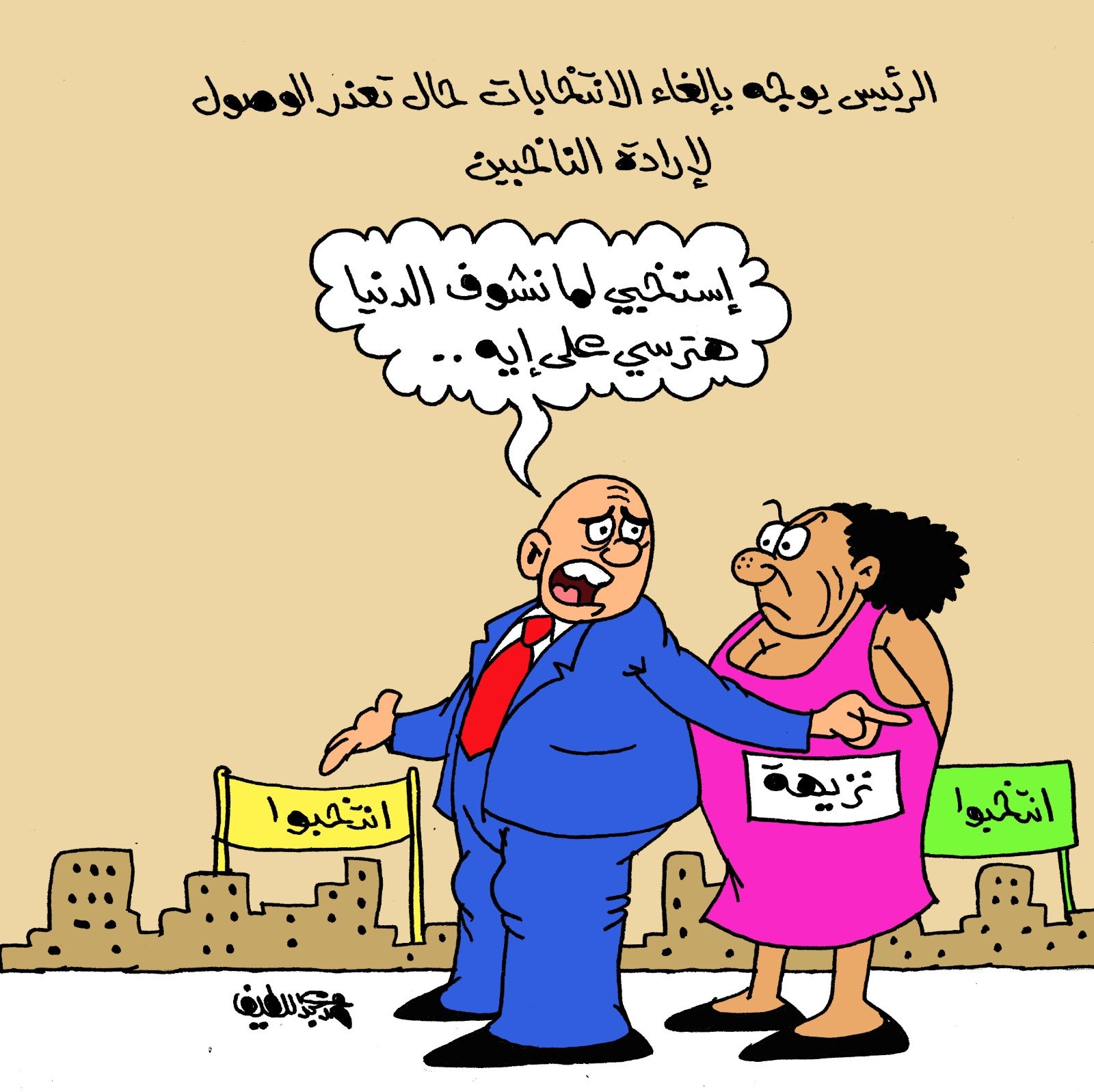 يقدم الفنان محمد عبد اللطيف كاريكاتير بعنوان: “الرئيس يوجه بإلغاء الانتخابات حال تعذر الوصول لإرادة الناخبين”.