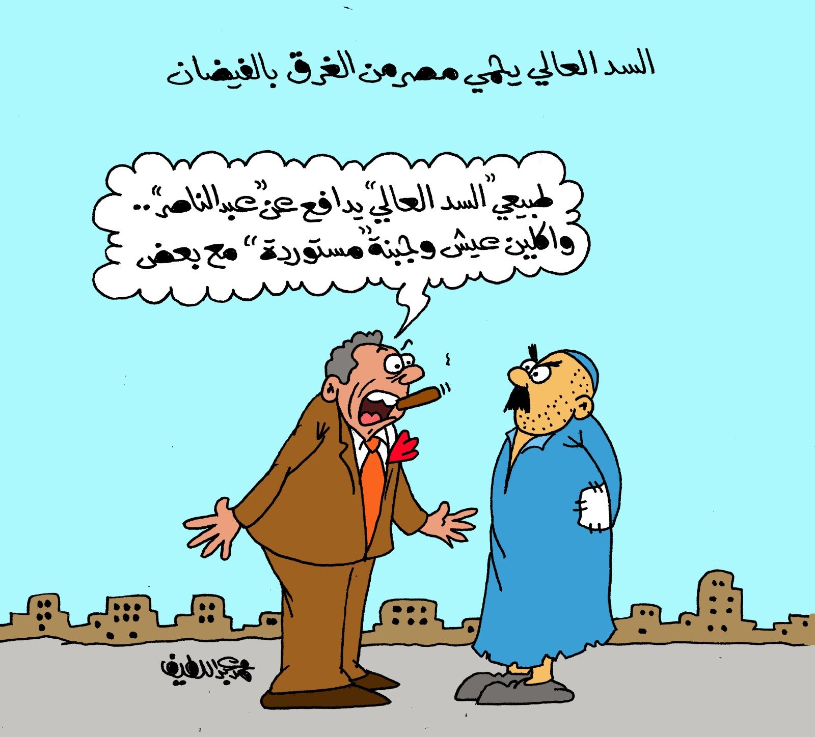 السد العالي يحمي مصر من الفيضانات.. كاريكاتير الفنان محمد عبد اللطيف