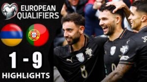 نجح المنتخب البرتغالي، أو ما يلقب بـ “الملاحون”، في تحقيق فوز كاسح علة أرمينيا في المباراة التي جمعتهما عصر اليوم على استاد الدراجاو في الجولة الأخيرة من التصفيات المؤهلة لكأس العالم.