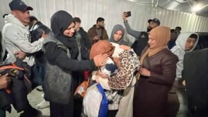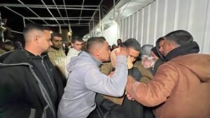 عناق اللقاء: تجمعت العائلات في حلقات من البكاء والفرح، حيث استقبل الآباء أبناءهم والزوجات أزواجهن بالورود والأحضان.