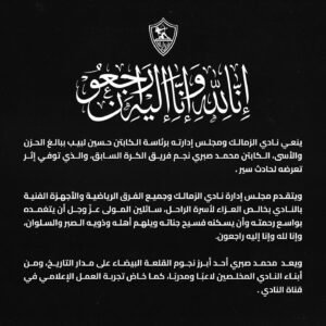 صفحة الزمالك الرسمية تنعى محمد صبري