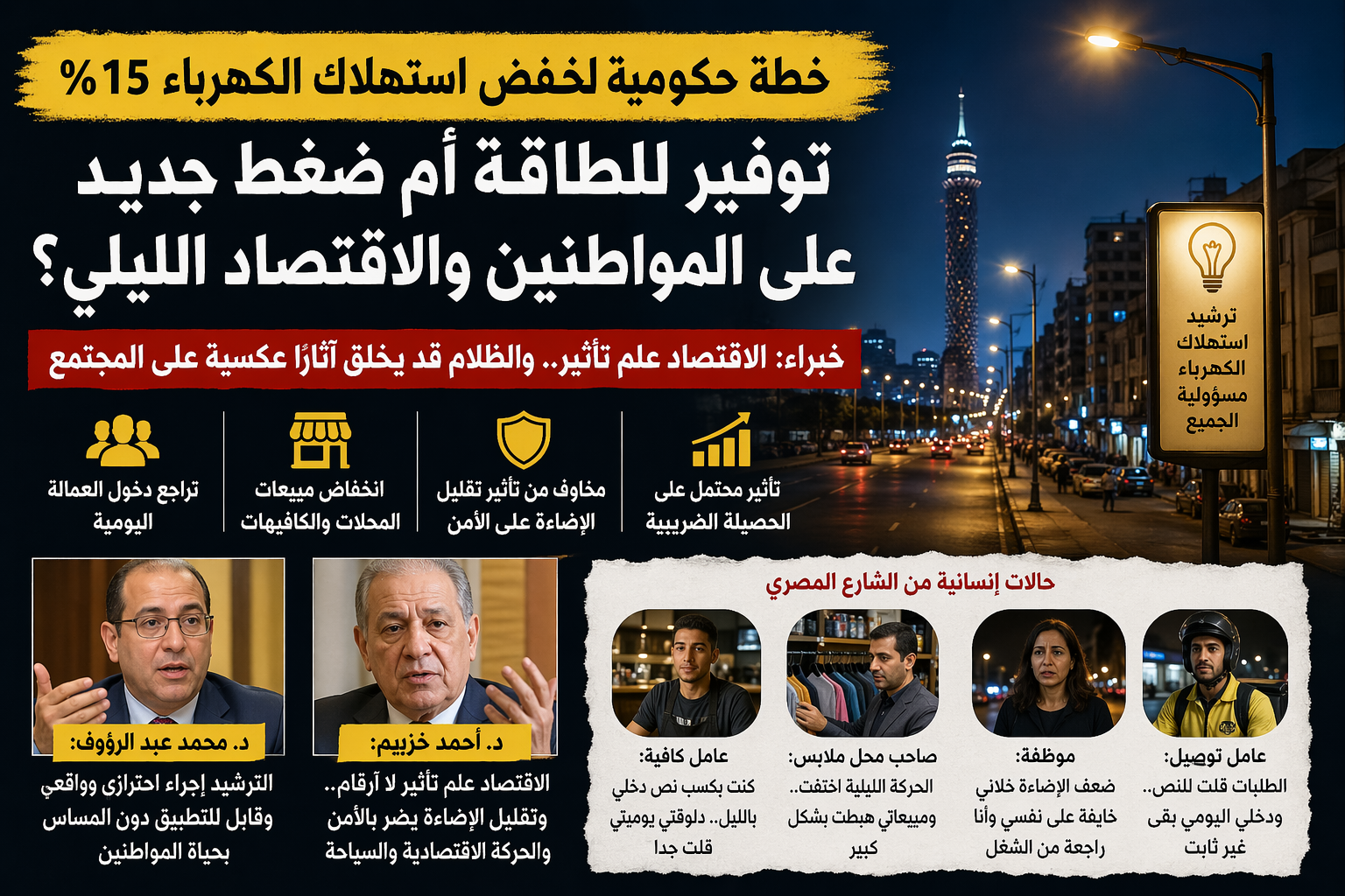 خفض الكهرباء 15% في مصر.. هل تتحول خطة الترشيد إلى أزمة تضرب الاقتصاد الليلي وأرزاق المواطنين؟