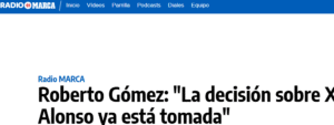 وأكد الصحفي الشهير روبيرتو غوميز، أن ريال مدريد قد اتخذ رسم بالفعل مسار ألونسو، وأن لكل مدرب “تاريخ صلاحية ” كما أنه يشعر بالخجل بسبب حملات التشويه ضد نجوم الملكي أبرزهم فينسيوس جونيور وفيدريكو فالفيردي بالرغم من أنهم نموذجين للاحترافية المطلقة.