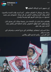 ونشر شيكابالا رسالة شكر حملت الكثير من مشاعر التقدير والامتنان، جاء فيها: